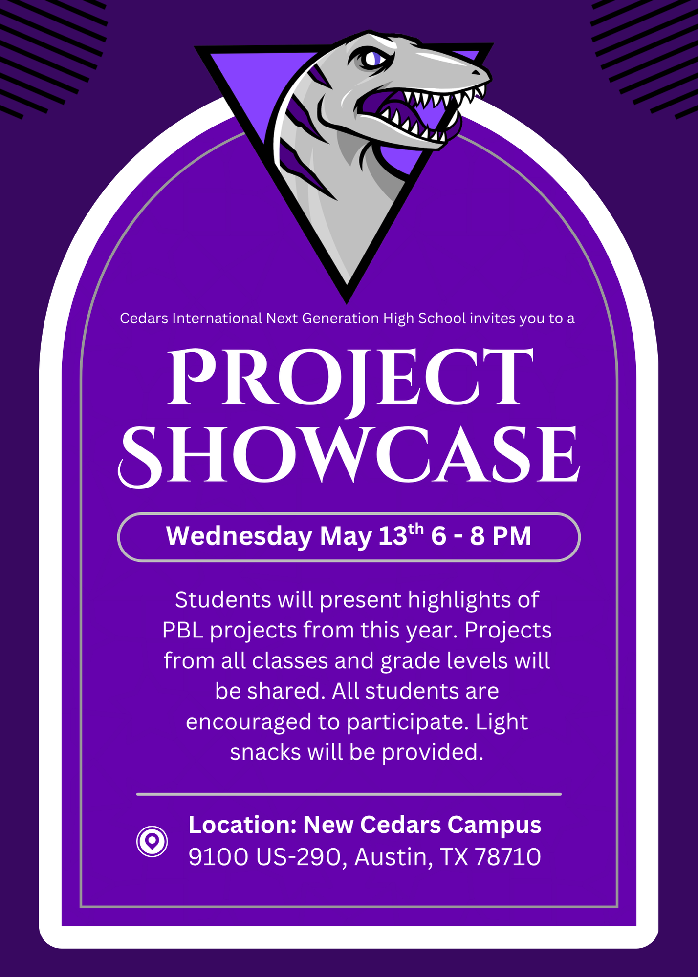 We are excited to announce that our 2026 Project Showcase will take place on Wednesday, May 13, at our new campus from 6:00 to 8:00 PM.
